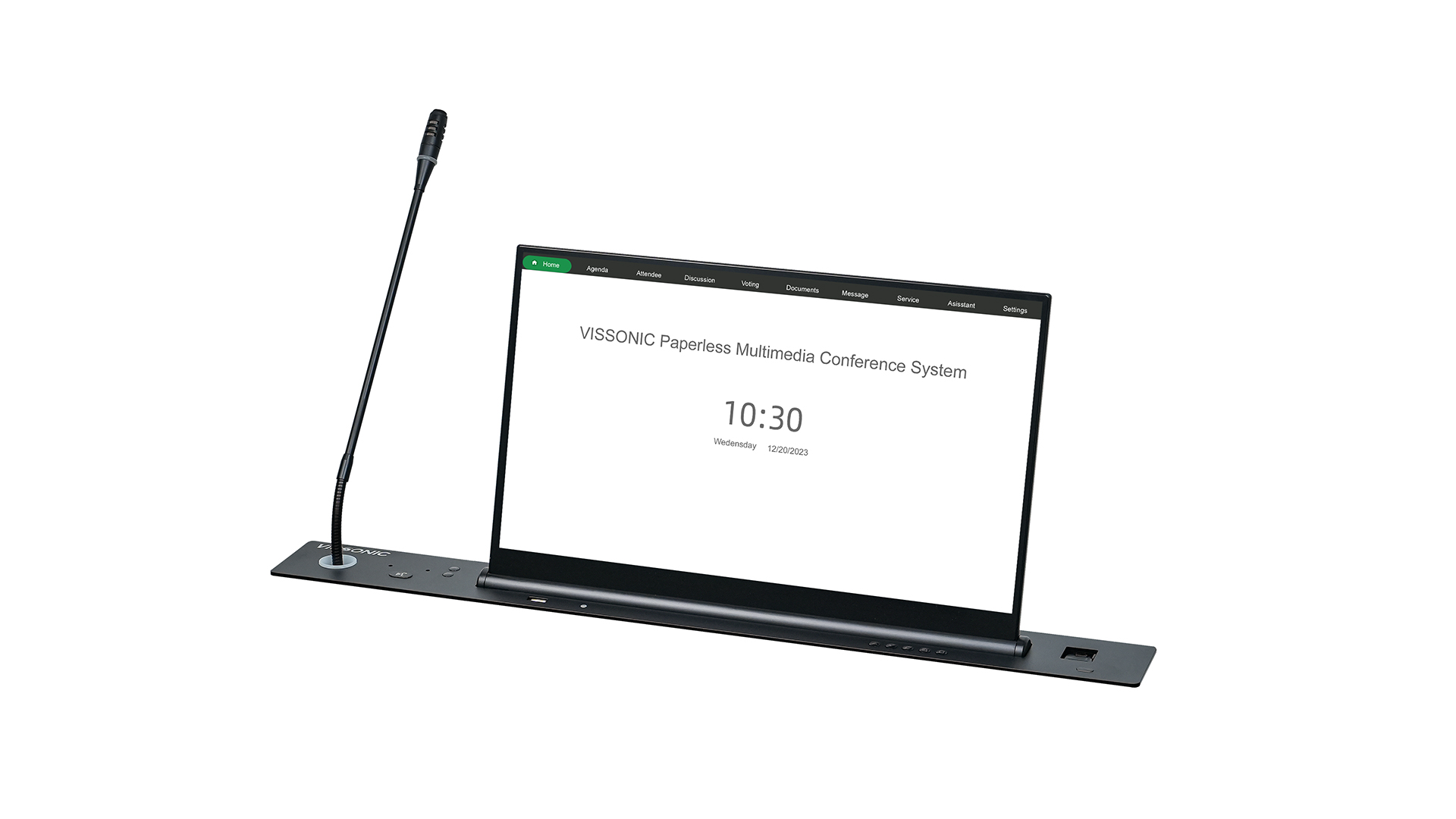 This paperless meeting system integrates a motorized touchscreen that combines cutting-edge technology with innovative design. Tailored for modern business and government meetings prioritizing efficiency, convenience, and sustainability, it features HD touchscreen displays with intelligent height adjustment and optimized viewing angles. The newly added one-touch screen sharing functionality significantly enhances meeting engagement while streamlining collaboration in paperless meeting environments.
