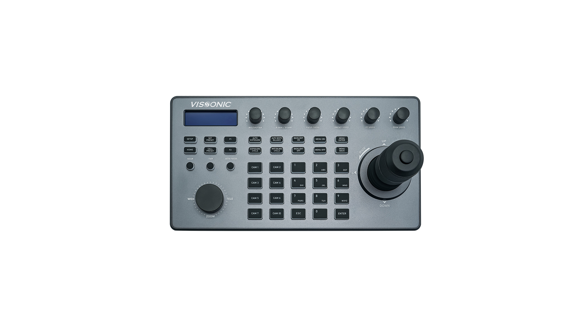 ● An unlimited number of controllers can operate on a single network, with the ability to control up to 255 cameras using a combination of PELCO, VISCA, ONVIF IP, and VISCA over IP protocols.
