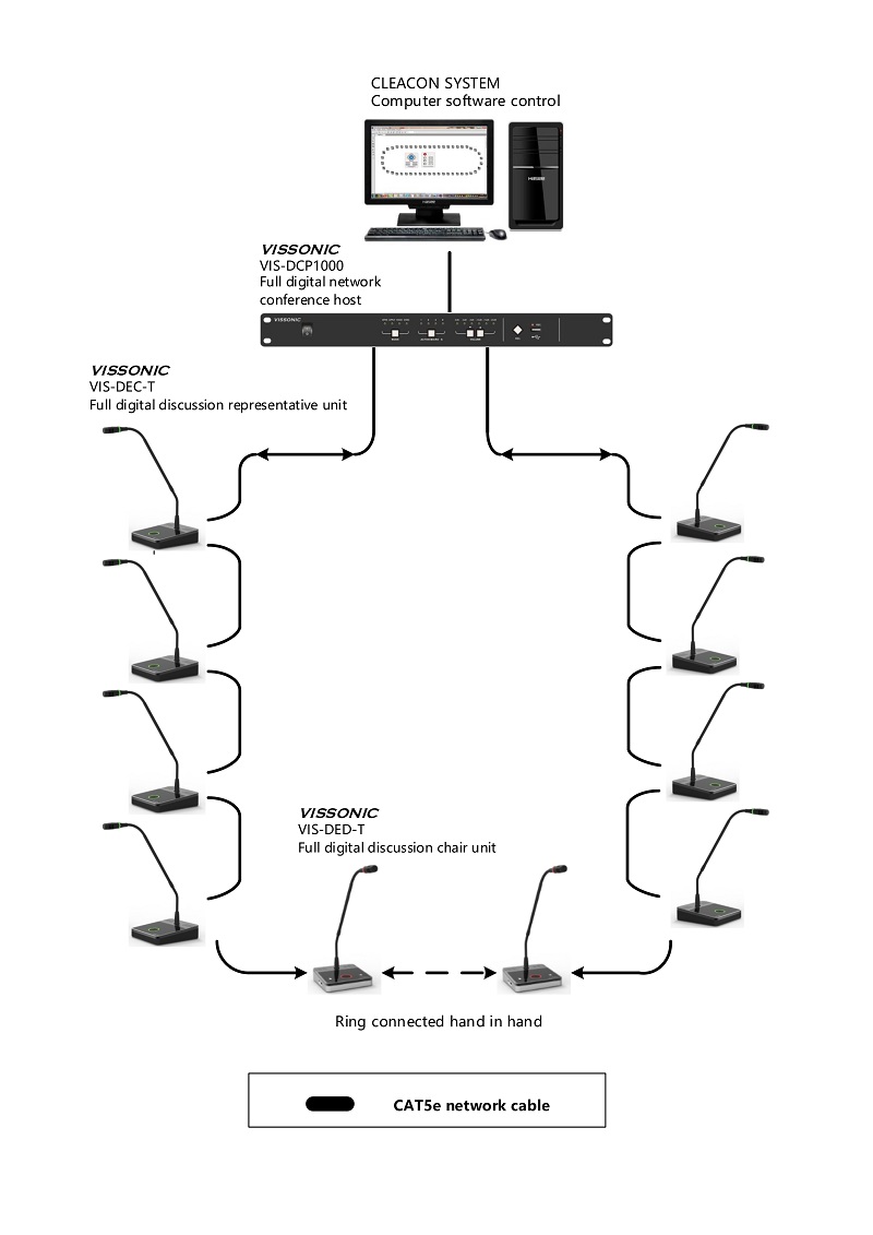 ● "Hand-in-Hand-Loop-Network" connection makes the system always working perfectly no matter changing discussion unit or having any malfunctioned units