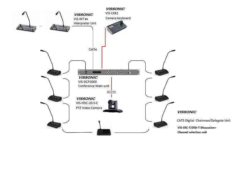 ● All units can be configured as Chairman or Delegate unit through software settings based on model VIS-DIC-T.