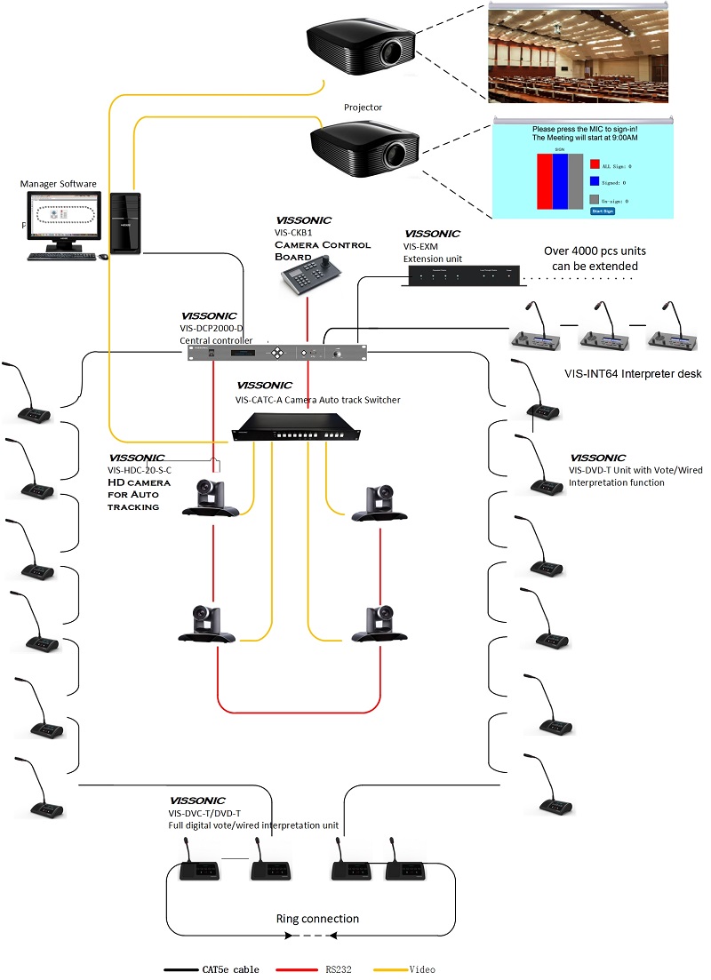 The digital conference system design reflects the elegant, yet compact and easy to use features. Normal CAT5e connection ensures fast and easy to build any sized meeting occasions, conference unit features a graphical interface operating area, including lighting reminder, anyone can get started quickly. Easy to install, user-friendly to use, and is designed to ensure higher productive meetings.