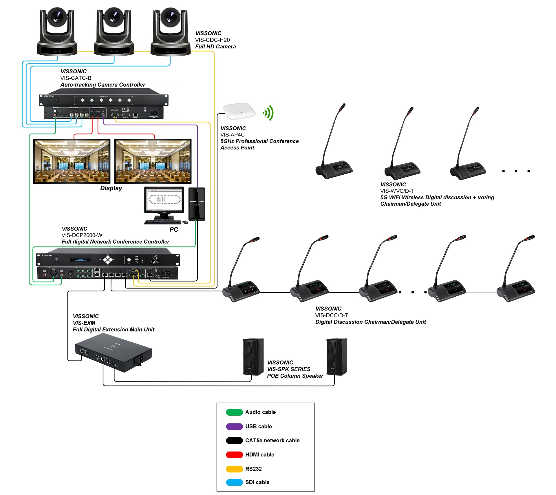 ● All units can be configured as Chairman or Delegate unit through software settings based on model VIS-DVC-T.