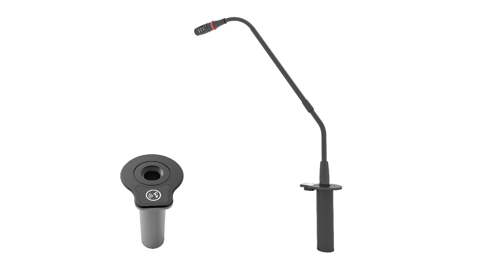 VIS-GSK-F is a flush mount gooseneck microphone base that can be connected to all range of VISSONIC M series microphones, the microphone can be removed from the base when it's not in use. The overall base is small and exquisite, with a touch button to switch the microphone on and off. It can be connected to the VIS-AIB analog microphone connection box and used in the CLEACON conference system, or it can connect to an analog system, such as the VIS-FS100-A automatic feedback suppressor, mixer, audio processor etc.
