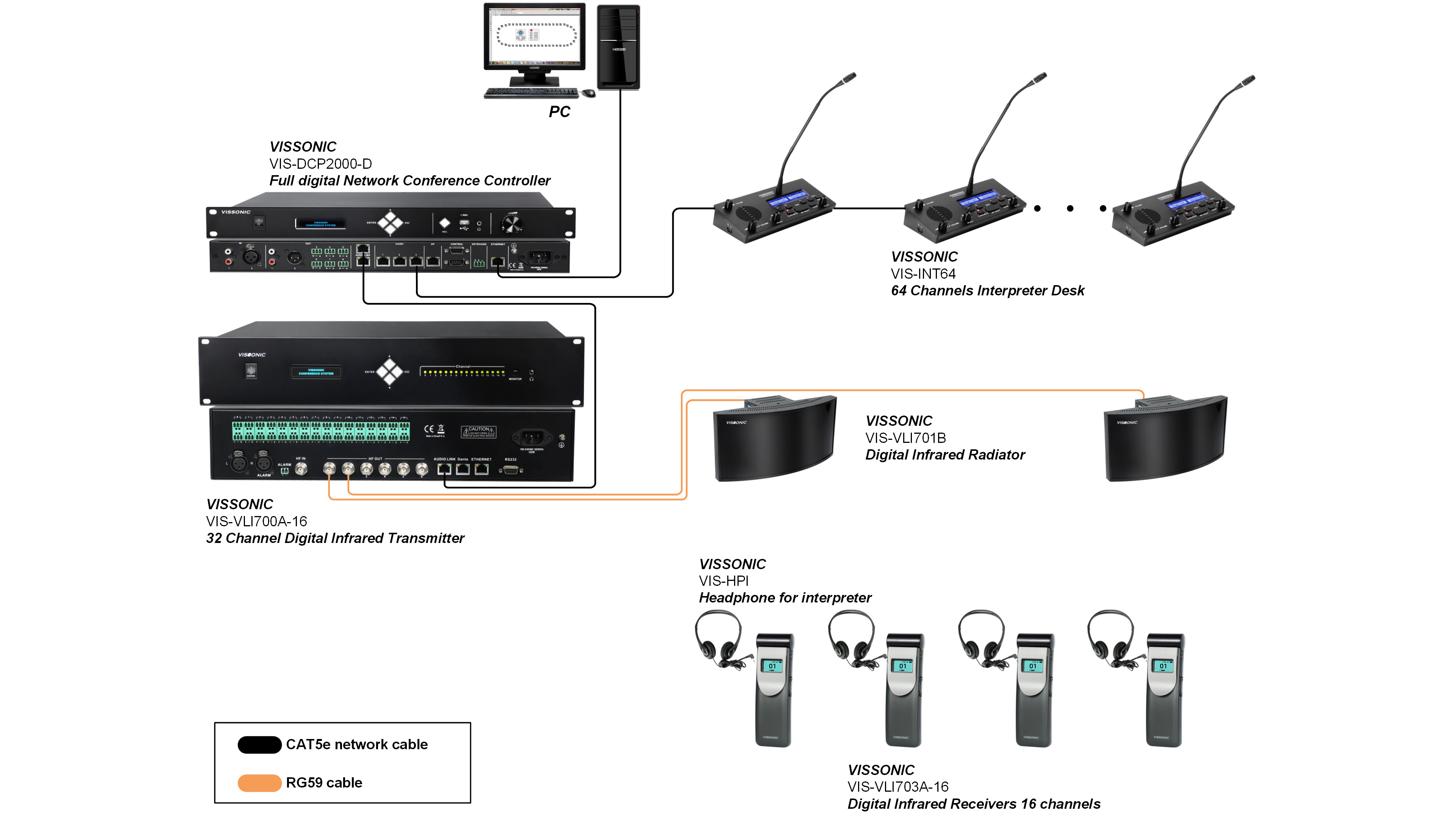 The dual-sided, lightweight, and comfortable VIS-HPI with MlC is designed for use with simultaneous interpretationsystems for both monitoring and speaking. It features a 32Ω impedance and a 3.5mm dual channel plug, minimizing interference from others in a conference system.