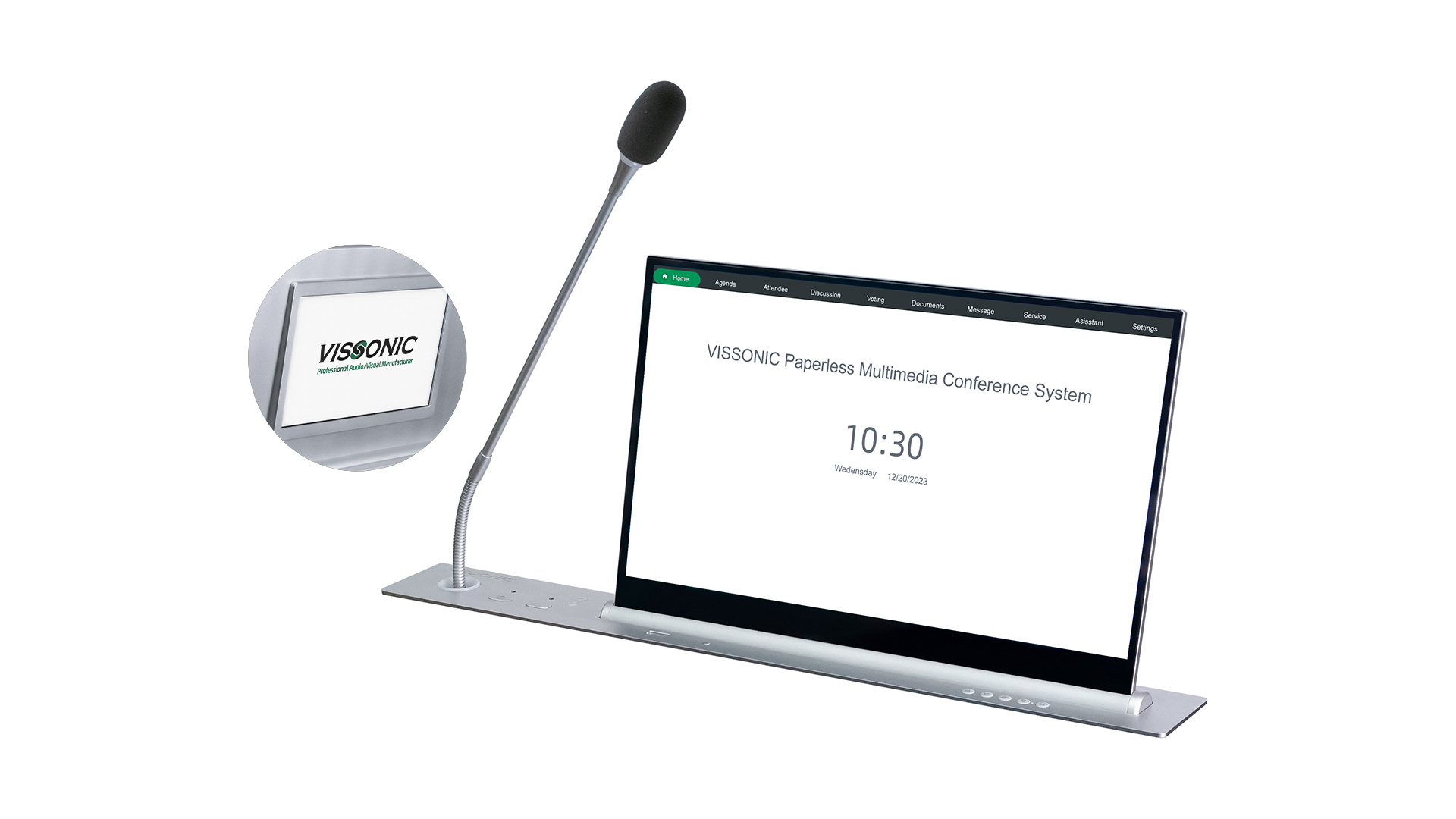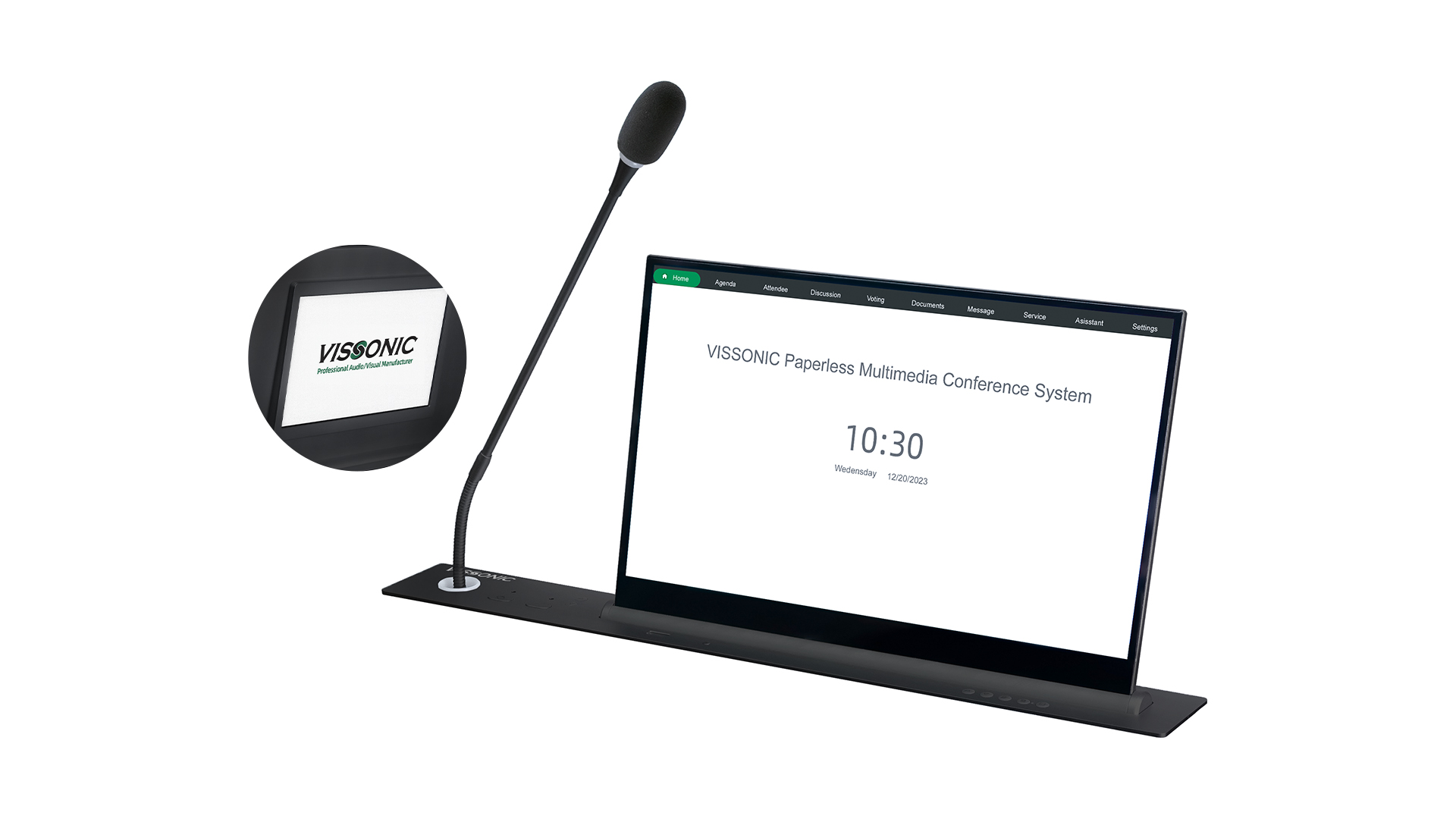●Built-in digital chairman/delegate unit with model VIS-M410 410mm microphone and support lift up/down separately form Monitor