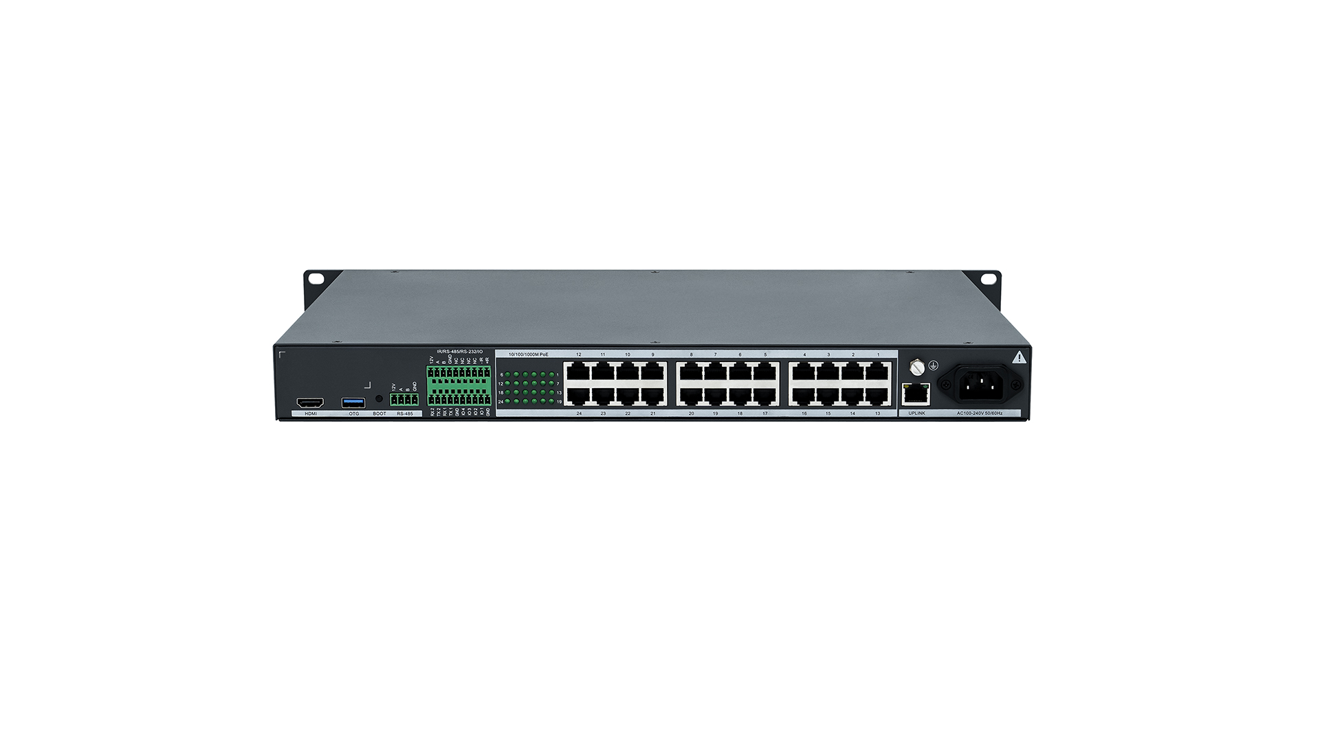 ● Supports 24 PoE power supplies, up to 13 W per port.