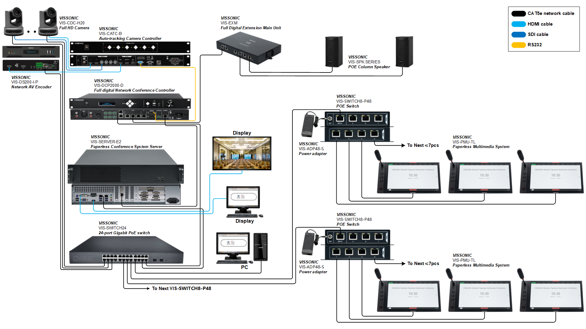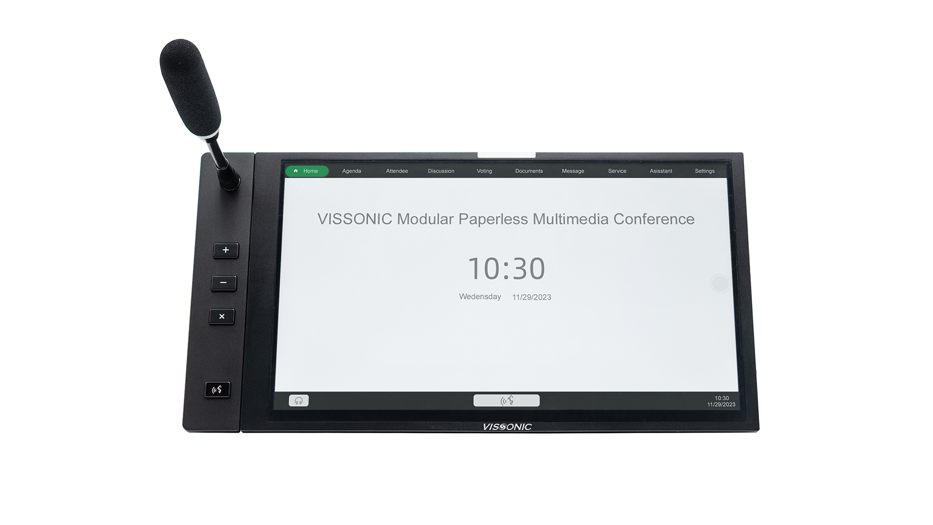 It realizes versatile functions, e.g. conference control & management (speech, vote, simultaneous interpretation), sign-in, conference documents management, speech text guidance, conference documents reader and editor, desktop sharing, delegate information and conference agenda display, and record facility on important conferences. Remote conferencing, video display and broadcasting, text messaging, call services, etc. Loudspeaker with superior acoustics with minimal feedback for enhanced intelligibility.