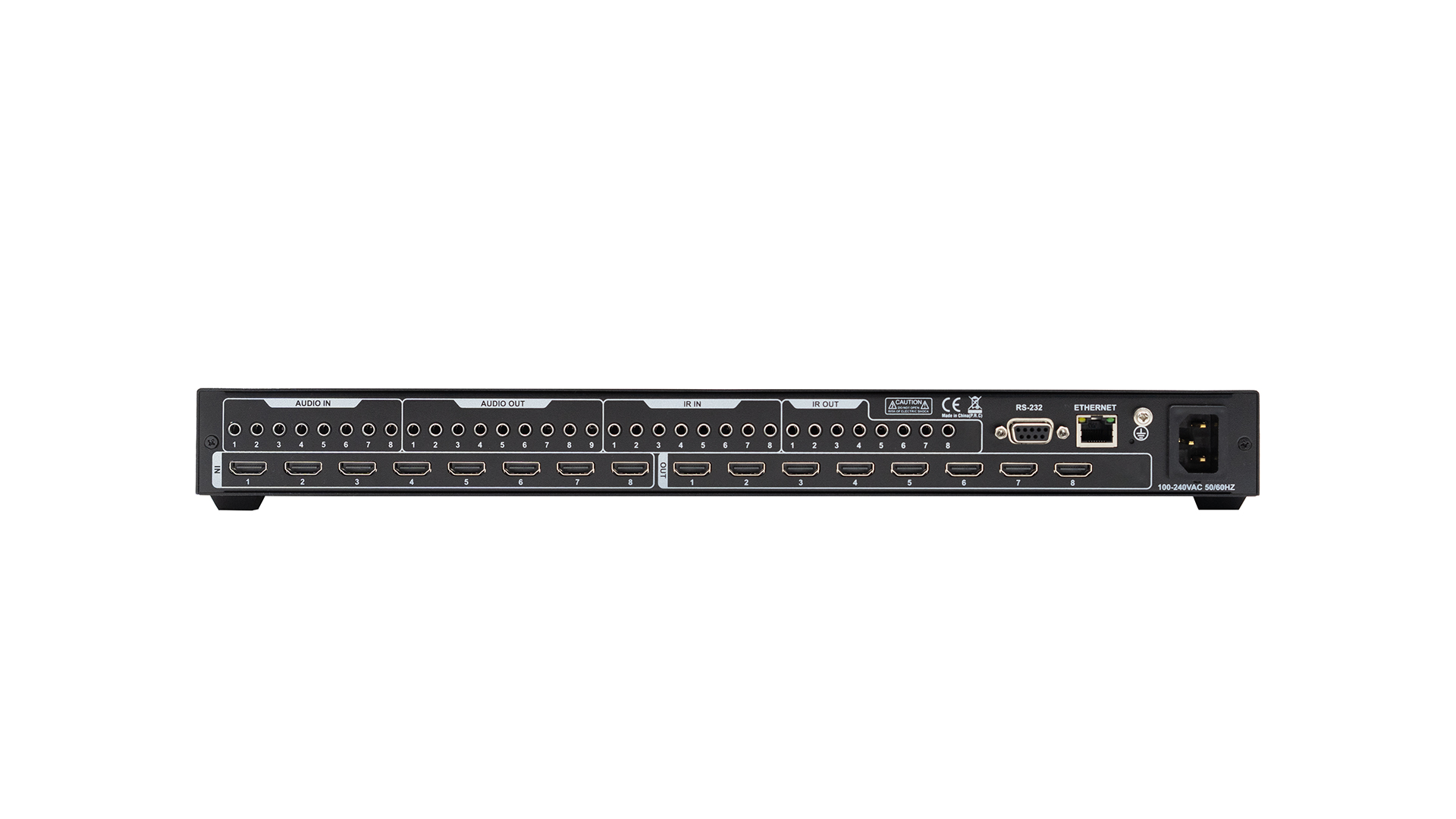 ● 8 IR and 8 analog audio inputs, 8 IR and 8 analog audio outputs