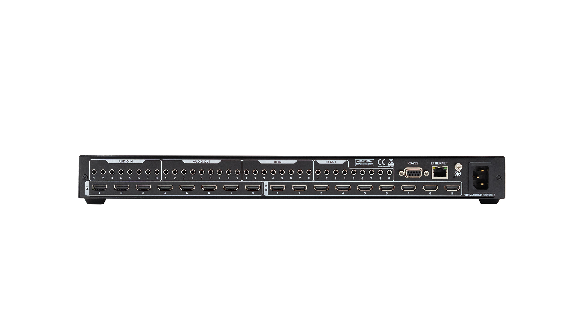 ● 8 IR and 8 analog audio inputs, 9 IR and 9 analog audio outputs